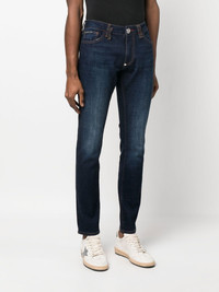 slim-cut leg jeans indigo blue cotton slim cut belt loops front button and zip fastening classic five pockets Imported Composition Lining: Polyester 65%, Cotton 35% Outer: Polyester 100%, Cotton 98%, Elastane 2% SIZE & FIT Model measurements Height 6 ft 2 in(1.88 m) Bust/Chest 36.61 in(93 cm) Hips 35.82 in(91 cm) Waist 27.95 in(71 cm)