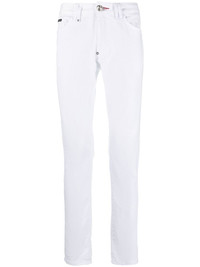 slim-leg jeans bone white stretch-cotton logo patch to the rear belt loops classic five pockets front button and zip fastening slim cut full-length Imported Composition Outer: Cotton 98%, Elastane 2% Lining: Polyester 65%, Cotton 35% SIZE & FIT Model measurements Height 6 ft 4 in(1.92 m) Bust/Chest 37.4 in(95 cm) Hips 37.4 in(95 cm) Waist 30.7 in(78 cm) FittingInformation This piece fits true to size. We recommend you get your regular size Cut for a close fit Made with a mid-weight stretch fabric Washing instructions Machine Wash