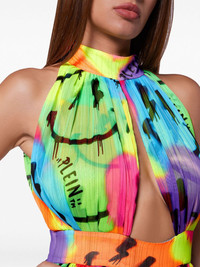 Smile chiffon maxi dress Highlights - Multicolour - Chiffon - Smile pattern print - Halterneck - Cut-out detailing - Concealed rear zip fastening - Sleeveless - Flared skirt - Long side slit - Floor-length Made in Italy Composition Polyester 99%, Metallized Polyester 1%