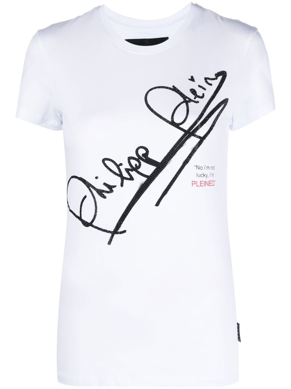 SS Signature cotton T-shirt white cotton glass crystal embellishment logo print to the front crew neck short sleeves straight hem Imported Composition glass 100%, Cotton 100% Washing instructions Hand Wash