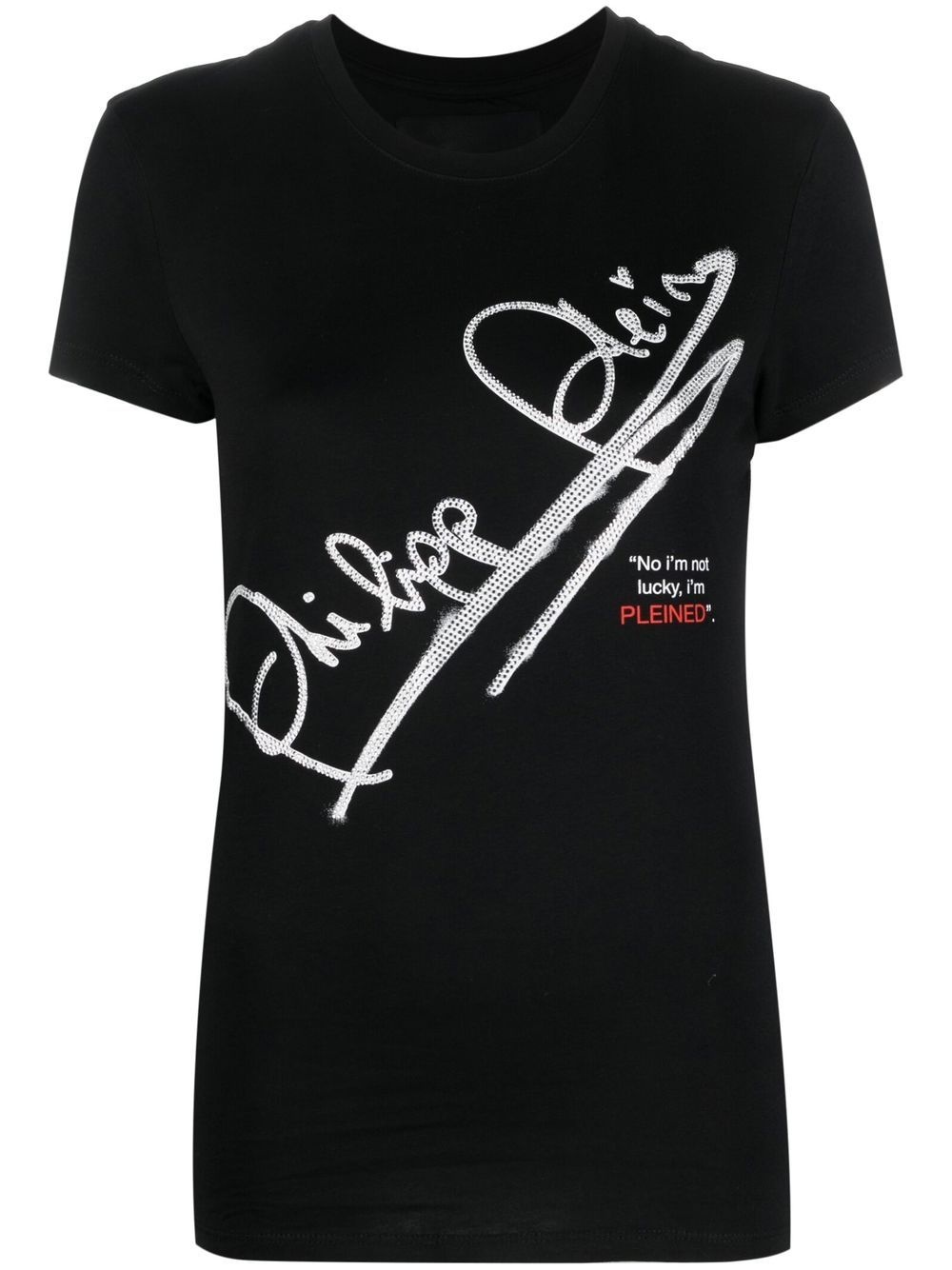 SS Signature cotton T-shirt black cotton glass crystal embellishment logo print to the front crew neck short sleeves straight hem Imported Composition glass 100%, Cotton 100% Washing instructions Hand Wash