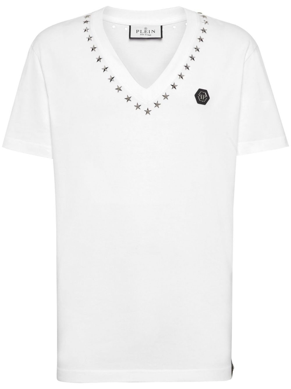 star-stud cotton T-shirt Highlights - White - Cotton - Applique logo - Star stud embellishment - V-neck - Short sleeves - Straight hem Made in Italy Composition Cotton 100%