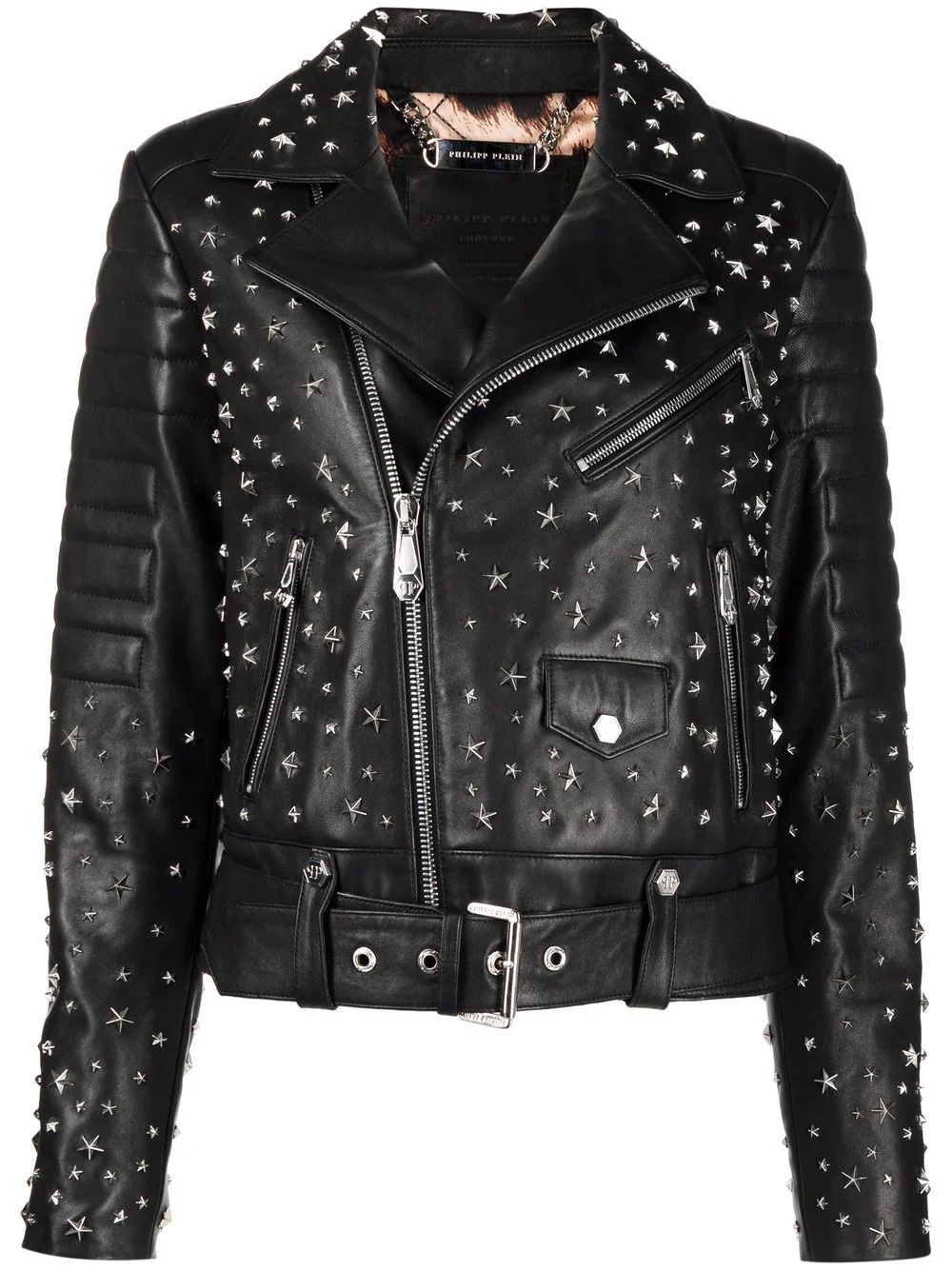 star-studded biker jacket black leather star stud detailing silver-tone hardware notched lapels off-centre front zip fastening long sleeves cuff zips two rear zip-fastening pockets front flap pocket Imported Composition Lining: Polyester 100% Outer: Calf Leather 100% SIZE & FIT Model measurements Height 5 ft 10 in(1.78 m) Bust/Chest 31.49 in(80 cm) Hips 36.22 in(92 cm) Waist 25.59 in(65 cm) FittingInformation This piece fits true to size. We recommend you get your regular size Cut for a slim fit Made with a heavyweight non-stretch fabric Washing instructions Specialist Cleaning