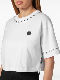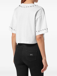 star-studded cotton cropped top Highlights - White - Cotton - Jersey texture - Star stud detailing - Applique logo - Logo tag - V-neck - Sleeveless - Straight hem - Cropped Made in Italy Composition Cotton 100%