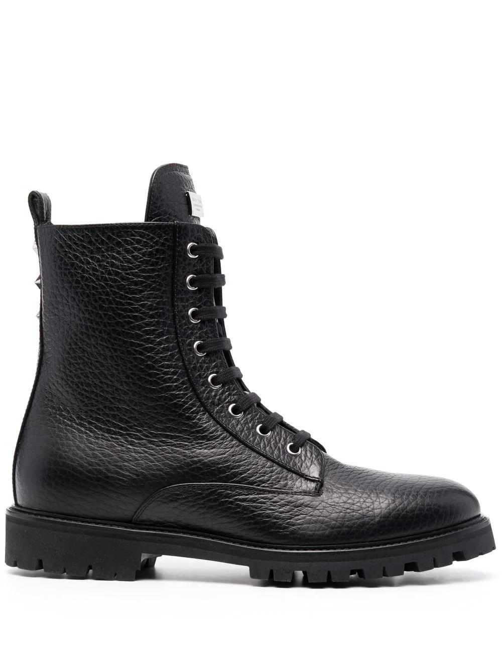 star-studded leather boots black leather grained texture silver-tone stud embellishment star stud detailing logo plaque at the tongue pull-tab at the heel round toe front lace-up fastening low heel rubber sole Made in Italy Composition Outer: Calf Leather 100% Lining: Calf Leather 100% Sole: Rubber 100% SIZE & FIT Measurement HEEL 1.77 in(4.5 cm) HEIGHT 6.69 in(17 cm) Sole height 0.98 in(2.5 cm)