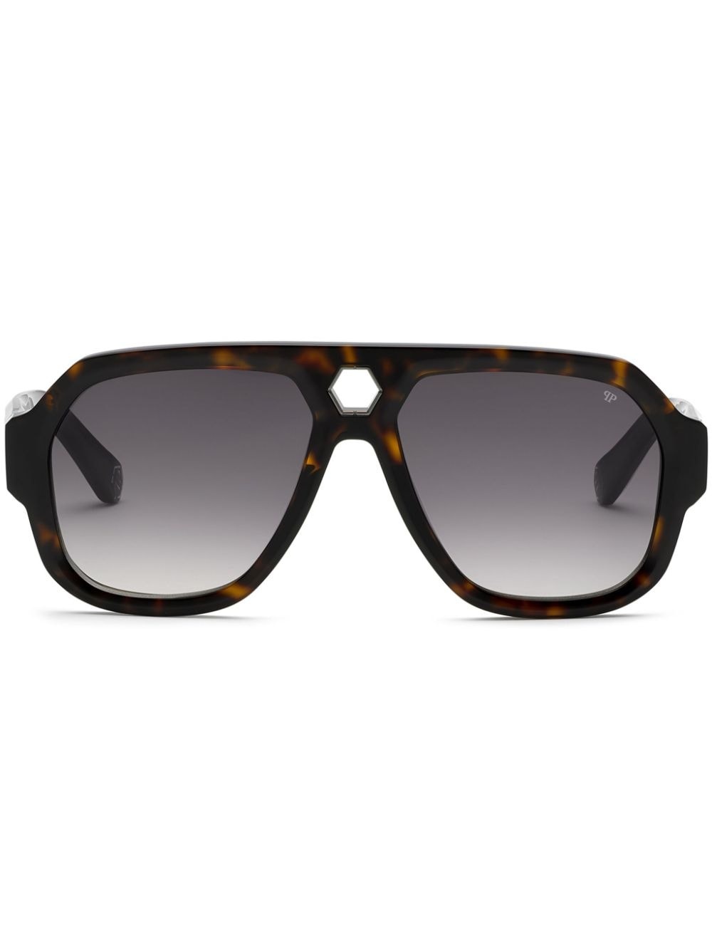 Starlight sunglasses Highlights - Brown - Acetate - Tortoiseshell effect - Pilot frame - Double bridge - Gradient lenses - All-over lens decal pattern - Logo charm - Curved tips - These glasses come with a protective case. Made in Italy Composition Acetate 100% SIZE & FIT Measurement Arm Length 5.9 in(15 cm) Bridge Width 0.62 in(1.6 cm) Lens Diameter 2.28 in(5.8 cm)