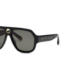 Starlight sunglasses Highlights - Black - Acetate - Pilot frame - Double bridge - Tinted lenses - Lens decal - Logo print at the arm - Curved tips - These glasses come with a protective case. Made in Italy Composition Acetate 100% SIZE & FIT Measurement Arm Length 5.9 in(15 cm) Bridge Width 0.62 in(1.6 cm) Lens Diameter 2.28 in(5.8 cm)