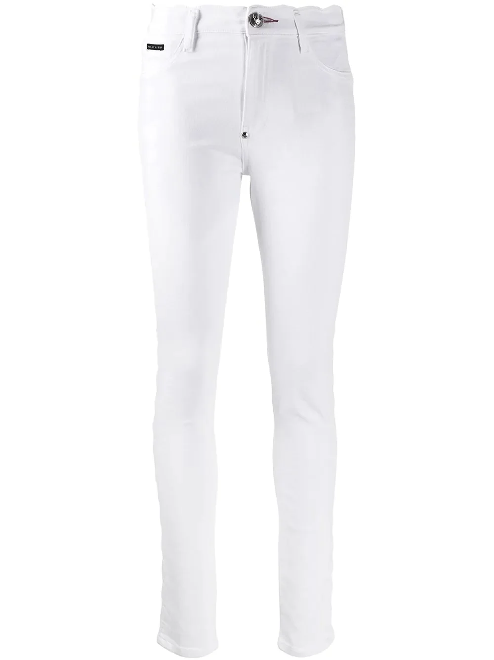 Statement skinny jeans German fashion designer Philipp Plein is renowned across the globe for his energetic and vibrant prints, as well as his unique grungy aesthetic. These white Statement skinny jeans feature a regular length, a high waist, a button & zip fastening, a waistband with belt loops and two front pockets. Imported Composition Cotton 98%, Spandex/Elastane 2% Washing instructions Machine Wash