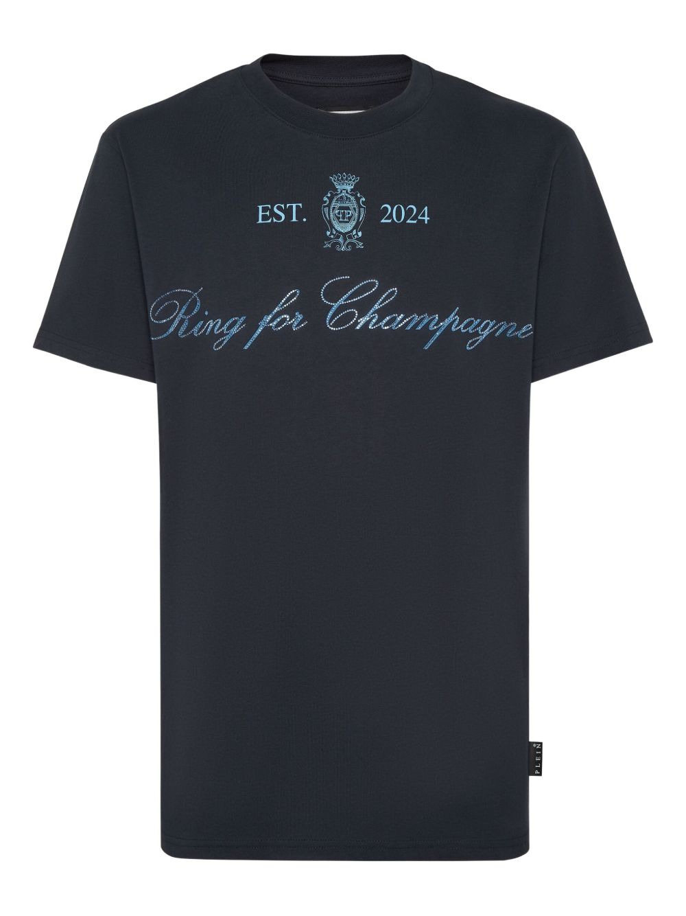 Stones embroidered-crest T-shirt Highlights - Dark blue - Crest print - Rhinestone embellishment - Short sleeves - Round neck Imported Composition Cotton 100% Washing instructions Read Manufacturer Guidelines