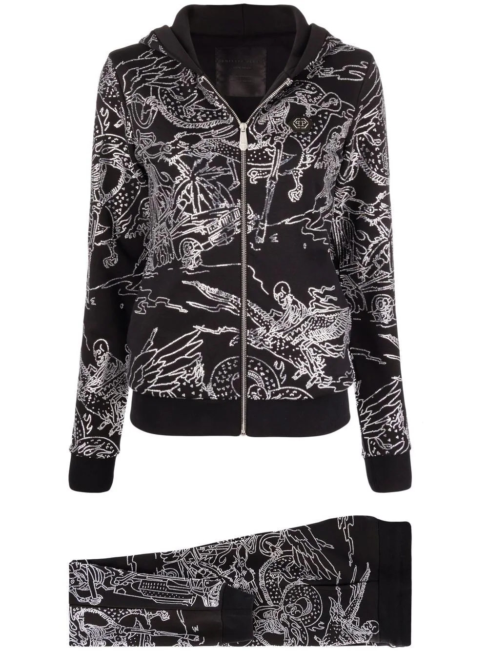 Stones Skeleton tattoo tracksuit Philipp Plein draws inspiration from body art as showcased on this tracksuit that stands out with the designer’s signature sparkling rhinestone Skeleton tattoo design. Imported Composition Outer: glass 100%, Cotton 88%, Polyester 12% Lining: Cotton 100% SIZE & FIT Model measurements Height 5 ft 10 in(1.77 m) Bust/Chest 31.49 in(80 cm) Hips 36.22 in(92 cm) Waist 22.44 in(57 cm) FittingInformation This piece fits true to size. We recommend you get your regular size Cut for a slim fit Made with a mid-weight fabric Washing instructions Dry Clean Only