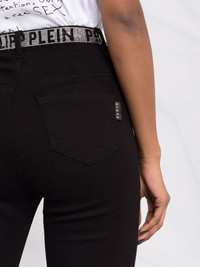 high-waist jeggings Philipp Plein’s love of rhinestones is showcased on these super high waist denim jeggings that draw the eye with their sparkling rhinestone logo waistband. Highlights - Black - High waist - Rhinestone embellishment - Logo waistband - Classic five pockets - Skinny cut Imported Composition Cotton 92%, Polyester 6%, Spandex/Elastane 2% SIZE & FIT Model measurements Height 5 ft 11 in(1.8 m) Bust/Chest 31.49 in(80 cm) Hips 35.82 in(91 cm) Waist 24.8 in(63 cm) FittingInformation This piece fits small – you might want to get one size up Cut for a close fit Made with a mid-weight stretch fabric Washing instructions Dry Clean Only