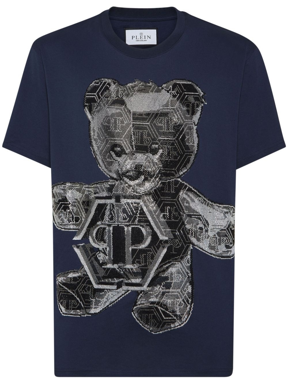 Stones Teddy Bear T-shirt Highlights - Navy blue - Cotton - Teddy bear print - Crew neck - Short sleeves - Rhinestone embellishment - Straight hem Imported Composition Glass Fiber 100%, Cotton 100%
