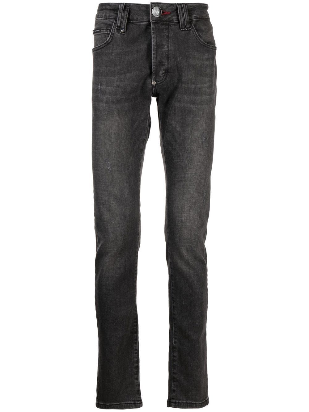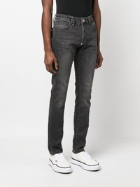 straight-leg cut jeans dark grey cotton straight leg logo plaque belt loops front button and zip fastening classic five pockets Imported Composition Outer: Cotton 98%, Elastane 2% Lining: Polyester 65%, Cotton 35% SIZE & FIT Model measurements Height 6 ft 2 in(1.89 m) Bust/Chest 37.4 in(95 cm) Hips 35.03 in(89 cm) Waist 27.95 in(71 cm) FittingInformation Designed for a skinny fit, these jeans offer a close fit throughout Constructed from stretch denim, this piece offers a stretch fit with durability This piece fits true to size – take your usual size Washing instructions Machine Wash