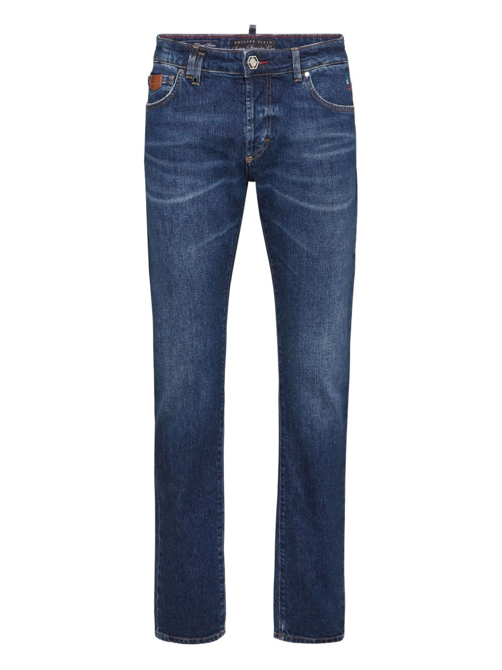 straight-leg jeans Highlights - Deep blue - Contrast stitching - Five-pocket design - Embroidered logo patch - Zip fly fastening Made in Italy Composition Outer: Cotton 99%, Elastane 1% Lining: Polyester 65%, Cotton 35%