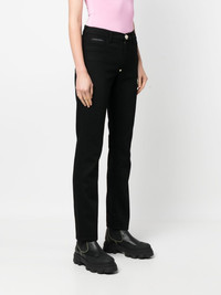 straight-leg regular-fit jeans black cotton blend slim cut straight leg mid-rise front button and zip fastening classic five pockets Made in Italy Composition Outer: Cotton 98%, Spandex/Elastane 2% Lining: Polyester 65%, Cotton 35% SIZE & FIT Model measurements Height 5 ft 10 in(1.78 m) Bust/Chest 31.49 in(80 cm) Hips 36.22 in(92 cm) Waist 25.59 in(65 cm) FittingInformation This piece fits true to size. We recommend you get your regular size Cut for a slim fit Made with a mid-weight stretch fabric Washing instructions Machine Wash