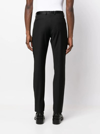 straight-leg wool-blend trousers black cotton-wool blend tailored design tonal stitching pressed crease belt loops front button and zip fastening straight leg Made in Italy Composition Lining: Polyester 65%, Cotton 35% Outer: Polyester 52%, Wool 43%, Spandex/Elastane 5% SIZE & FIT Model measurements Height 6 ft 2 in(1.88 m) Bust/Chest 36.61 in(93 cm) Hips 35.82 in(91 cm) Waist 27.95 in(71 cm) FittingInformation This piece fits true to size. We recommend you get your regular size Cut for a slim fit Made with a mid-weight stretch fabric Washing instructions Dry Clean Only