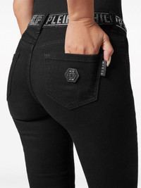 Strass stretch-denim leggings Highlights - Black - Cotton blend - Denim - Logo plaque - Logo waistband - Belt loops - Front button and zip fastening - Super-skinny cut - Classic five pockets - Straight hem Imported Composition Cotton 92%, Elastomultiester 6%, Elastane 2% Washing instructions Read Manufacturer Guidelines