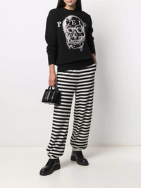 striped track pants Highlights - Black/white - Wool-cashmere blend - Two-tone design - Horizontal stripe pattern - Logo waistband - Elasticated cuffs Made in Italy Composition Polyamide 35%, Wool 30%, Viscose 30%, Cashmere 5% SIZE & FIT Model measurements Height 5 ft 11 in(1.8 m) Bust/Chest 33.07 in(84 cm) Hips 37.4 in(95 cm) Waist 25.19 in(64 cm) FittingInformation This piece fits true to size. We recommend you get your regular size Designed to be loose over the leg with a fitted waist and hem Made with a mid-weight fabric Washing instructions Hand Wash