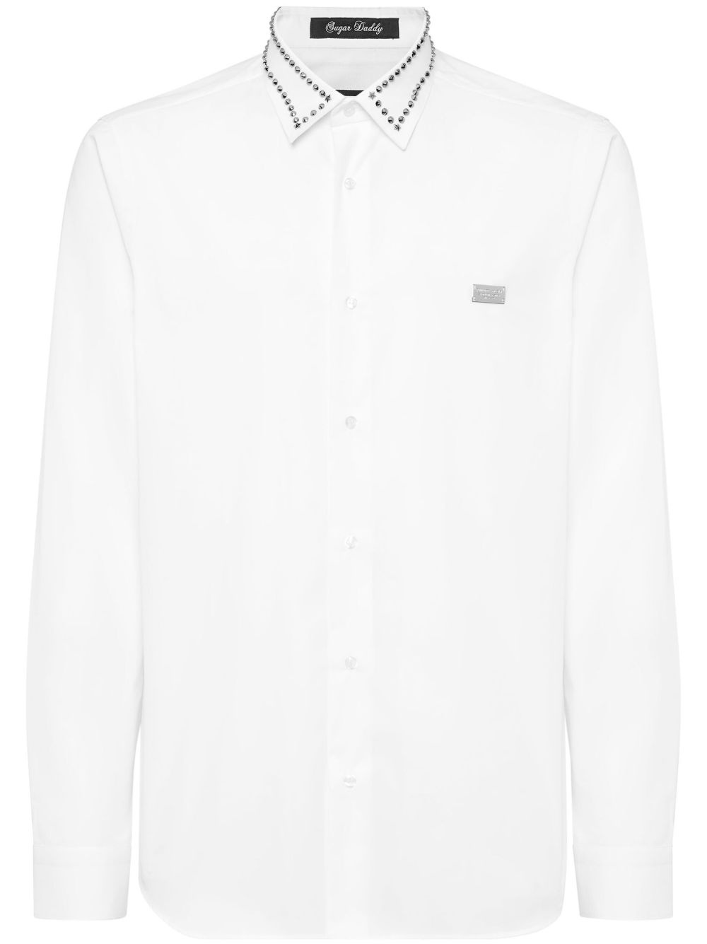 stud-embellished shirt Highlights - White - Front button fastening - Buttoned cuffs - Logo plaque - Long sleeves Made in Italy Composition Cotton 100%