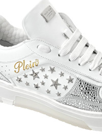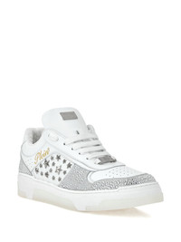 stud-embellished sneakers Highlights - White - Front lace-up fastening - Rubber sole - Crystal embellishment - Perforated toebox Made in Italy Composition Lining: Calf Leather 100%, Polyester 90%, Elastodiene 10% Outer: Calf Leather 100%, Zinc 100%, glass 100% Sole: Synthetic Rubber 100%