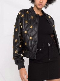 studded quilted bomber jacket Philipp Plein is known for his edgy, bold designs and this leather quilted bomber jacket encapsulates the designer's rebellious spirit with its punk-inspired gold-tone studs. Imported Composition Outer: Lamb Skin 100% Lining: Polyester 100%, Acrylonitrile Butadiene Styrene (ABS) 100% SIZE & FIT Model measurements Height 5 ft 10 in(1.79 m) Bust/Chest 34.25 in(87 cm) Hips 37 in(94 cm) Waist 25.19 in(64 cm) FittingInformation This piece fits true to size. We recommend you get your regular size Cut for a slim fit Made with a mid-weight non-stretch fabric Washing instructions Specialist Cleaning