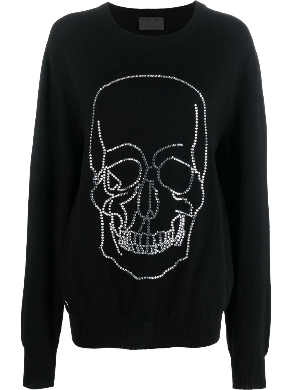 studded-skull cashmere pullover black cashmere round neck skull stud detailing long sleeves ribbed cuffs ribbed hem Made in Italy Composition Cashmere 100% SIZE & FIT Model measurements Height 5 ft 9 in(1.75 m) Bust/Chest 32.67 in(83 cm) Hips 36.22 in(92 cm) Waist 24.8 in(63 cm) FittingInformation This piece fits true to size. We recommend you get your regular size Cut for a loose fit Made with a mid-weight fabric Washing instructions Hand Wash