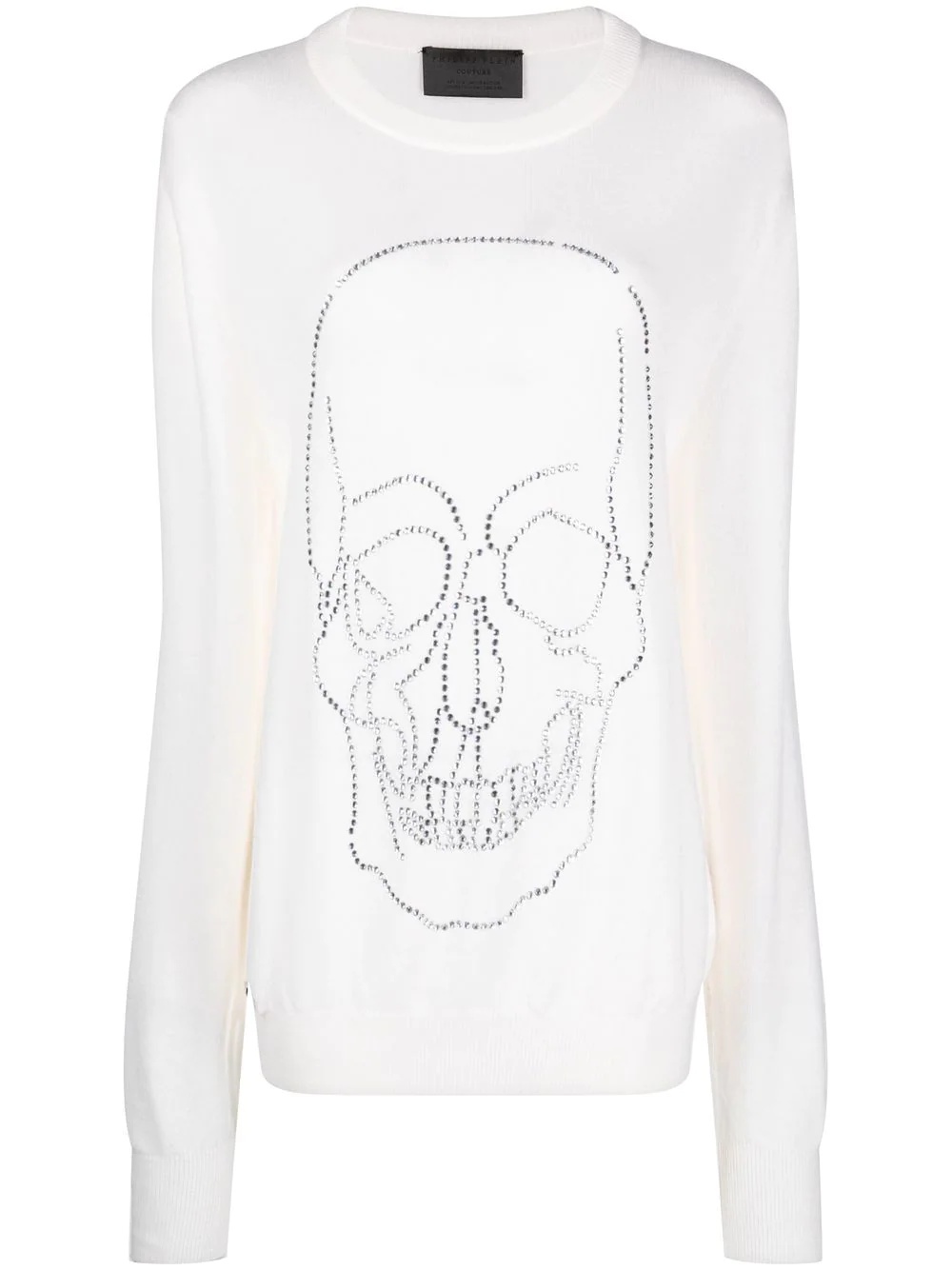 studded-skull cashmere pullover white cashmere round neck skull stud detailing long sleeves ribbed cuffs ribbed hem Made In Italy Composition Cashmere 100% SIZE & FIT Model measurements Height 5 ft 9 in(1.75 m) Bust/Chest 32.67 in(83 cm) Hips 36.22 in(92 cm) Waist 24.8 in(63 cm) FittingInformation This piece fits true to size. We recommend you get your regular size Cut for a loose fit Made with a mid-weight fabric Washing instructions Hand Wash