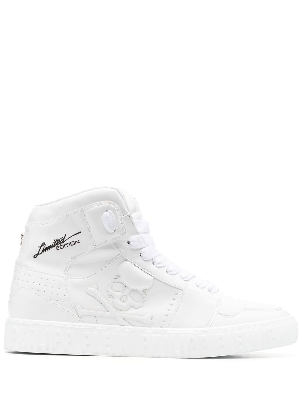 Super Street Skull Bones hi-top sneakers Philipp Plein infuses a sporty-style hi-top silhouette with gothic detailing in these sneakers. Crafted from calf leather with a patent finish, this pair is highlighted by a tonal skull and crossbones motif on the side. Made in Italy Composition Leather 100% SIZE & FIT Measurement HEEL 1.18 in(3 cm) HEIGHT 4.72 in(12 cm) Sole height 0.98 in(2.5 cm)