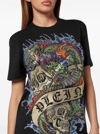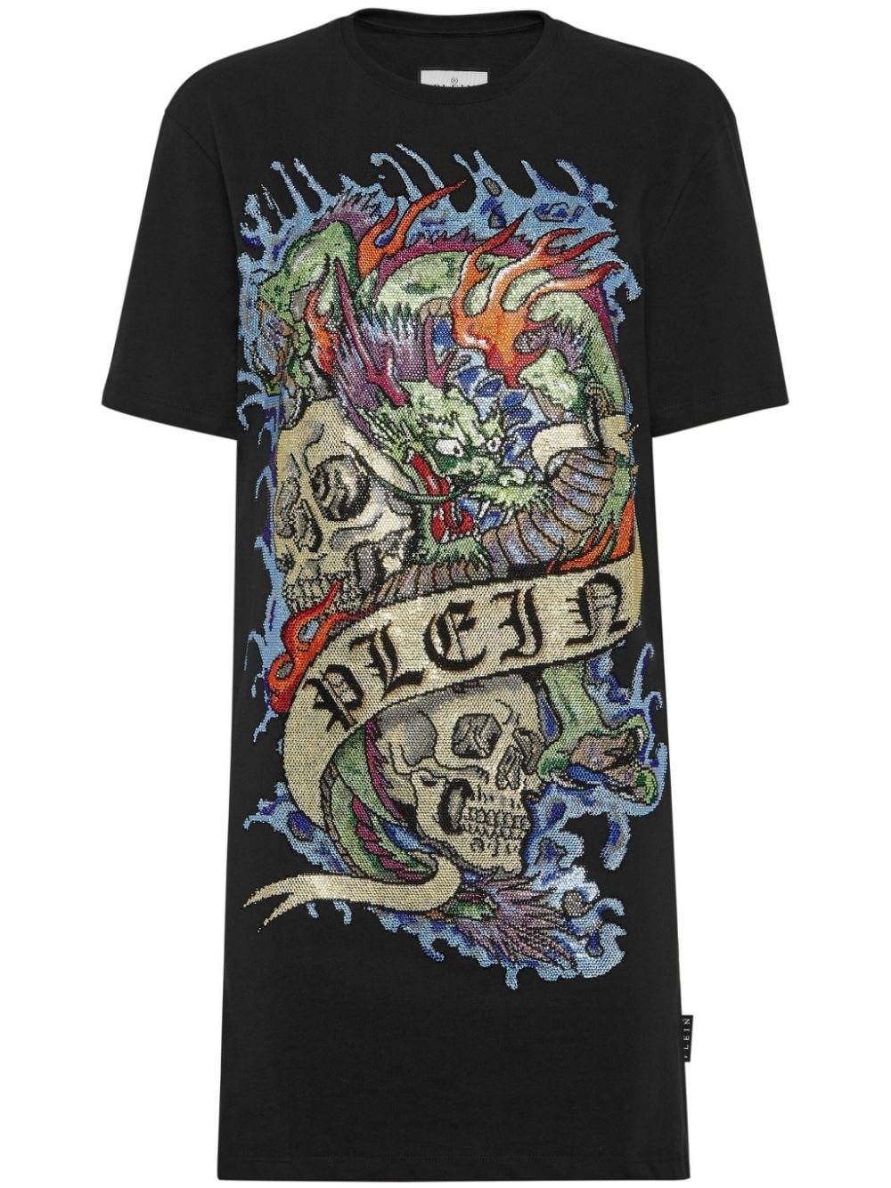 Tattoo crystal T-shirt dress Highlights - Black/multicolour - Cotton - Jersey texture - Graphic print to the front - Logo print to the front - Crystal embellishment - Applique logo - Crew neck - Short sleeves - Straight hem - Thigh-length Imported Composition Cotton 100%
