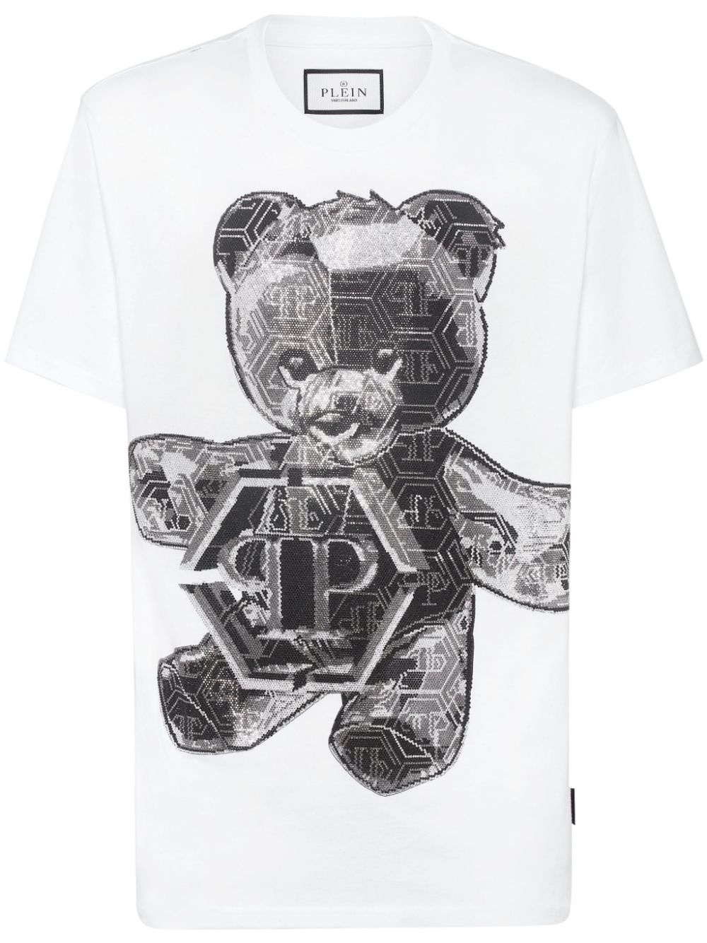 Teddy Bear-applique cotton shirt Highlights - White - Cotton - Jersey texture - Teddy bear rhinestone applique detail - Round neck - Short sleeves - Straight hem Imported Composition Cotton 100%, Glass Fiber 100%