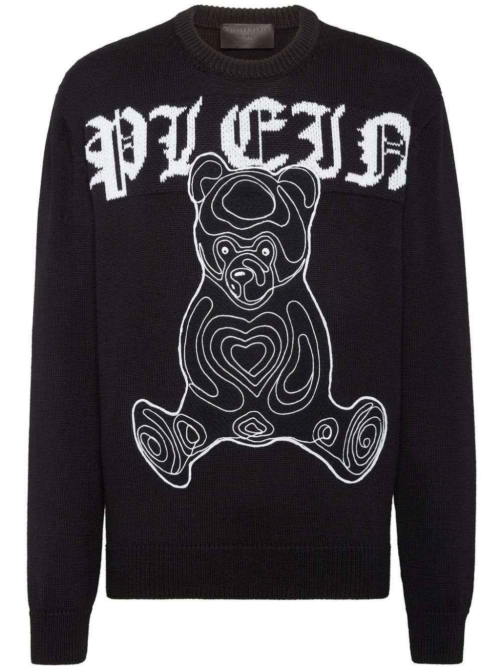 teddy bear-print wool jumper Highlights - Black - Wool - Intarsia-knit logo - Logo patch to the rear - Signature teddy bear motif - Crew neck - Long sleeves - Ribbed trim - Straight hem Made in Italy Composition Wool 100%