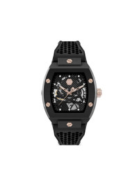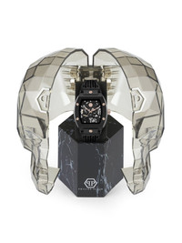 The Skeleton 44mm Highlights - Black - Stainless steel - Ceramic case - Seiko automatic movement nh70 - Geometric dial - Baton hands - Cushion face - Adjustable strap to the rear - Buckle fastening - Skull applique - Logo plaque - Stud detail - Screw-down crown - Water resistance up to 50m/5 atm - This item comes with a standard one-year warranty from the boutique. Imported Composition Brass 100%, Silicone 100%, Eco-ceramic 100%