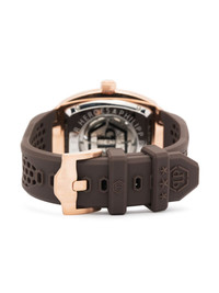 The Skeleton crystal-accent 44mm An ode to Philipp Plein’s expertise in watchmaking, this Skeleton 44mm is so-called thanks to the partially cut-out dial that exhibits the inner automatic movement. It’s crafted from black silicone and finished with a signature skull motif that anchors the slender contrasting hands. Highlights - Black - Swarovski crystal embellishment - Pp logo - Automatic movement - Screw-down crown - Index dial - Baton hands - Square face - Skull applique - Skeleton dial - Rear silicone strap - This item comes with a standard one-year warranty from the brand. Imported Composition Silicone 100%, glass 100%, stainless steel 100% SIZE & FIT Measurement DIAMETER 1.92 in(4.9 cm) Minimum Length 7.28 in(18.5 cm) Thickness 0.55 in(1.4 cm) TOTAL LENGTH 8.85 in(22.5 cm) WIDTH 1.37 in(3.5 cm)