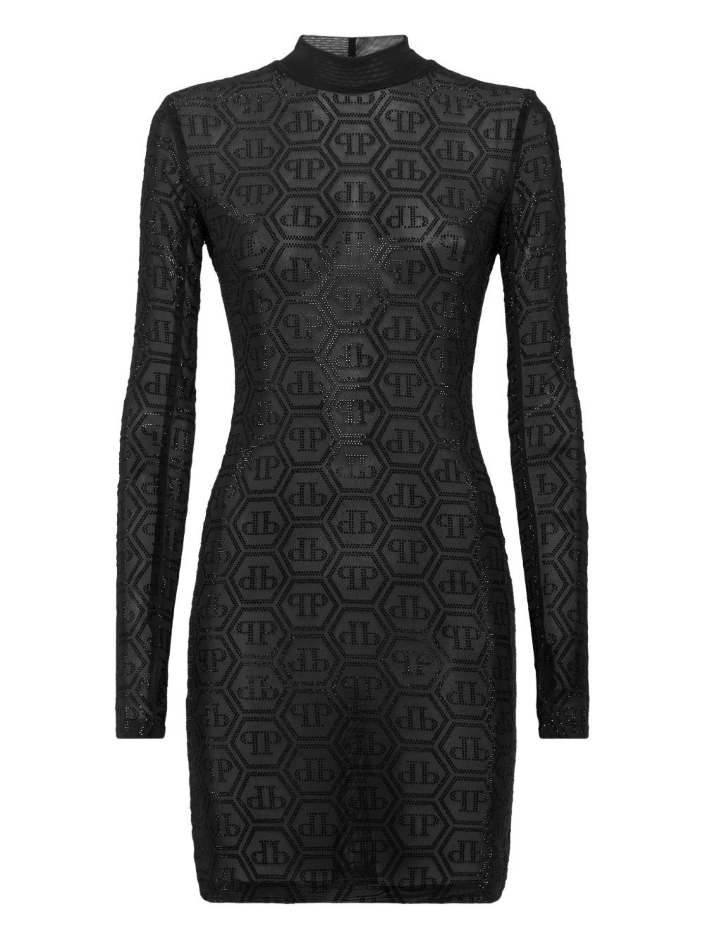 Tulle Monogram Strass mini dress Highlights - Black - Tulle overlay - Monogram pattern - Long sleeves Imported Composition Polyester 85%, Elastane 15%