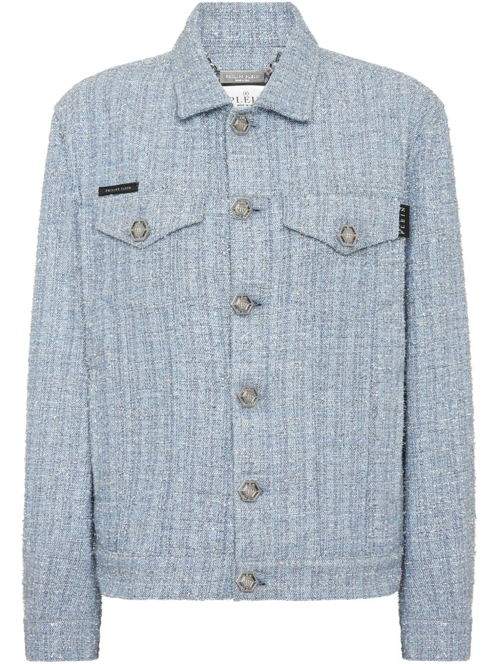tweed cropped jacket Highlights - Blue - Tweed - Front button fastening - Two chest flap pockets - Long sleeves Made in Italy Composition Outer: Cotton 58%, Acrylic 16%, Polyester 15%, Polyamide 7%, Viscose 4% Lining: Polyester 65%, Cotton 35%