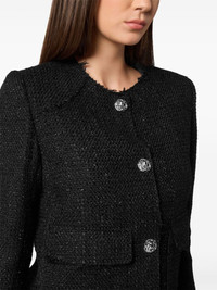 tweed jacket Highlights - Black - Tweed - Raw-cut finish - Embossed silver-tone buttons - Crew neck - Front button fastening - Shoulder pads - Long sleeves - Two side flap pockets - Straight hem - Full lining Made in Italy Composition Outer: Polyester 83%, Acrylic 15%, Other fibres 2% Lining: Polyester 100%