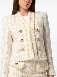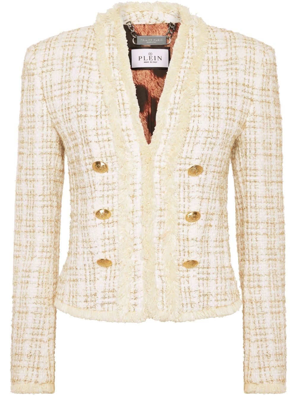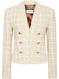 tweed jacket Highlights - White - Tweed - Concealed front fastening - Long sleeves Made in Italy Composition Outer: Cotton 52%, Acrylic 31%, Polyester 8%, Viscose 5%, Polyamide 4% Lining: Polyester 100%