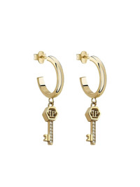 Valentine key-detail earrings Highlights - Gold - Hoop design - Key charm with embellished crystals - Polished finish - These earrings come as a pair. - Normal everyday use and external agents may reduce the lustre of gemstones and gold surfaces. to maintain, use specific, non-abrasive products specially meant for cleaning jewellery. Imported SIZE & FIT Measurement HEIGHT 1.57 in(4 cm)