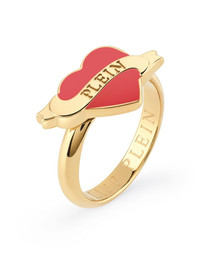 Valentine ring Highlights - Gold-tone - Heart cut - Engraved logo Imported