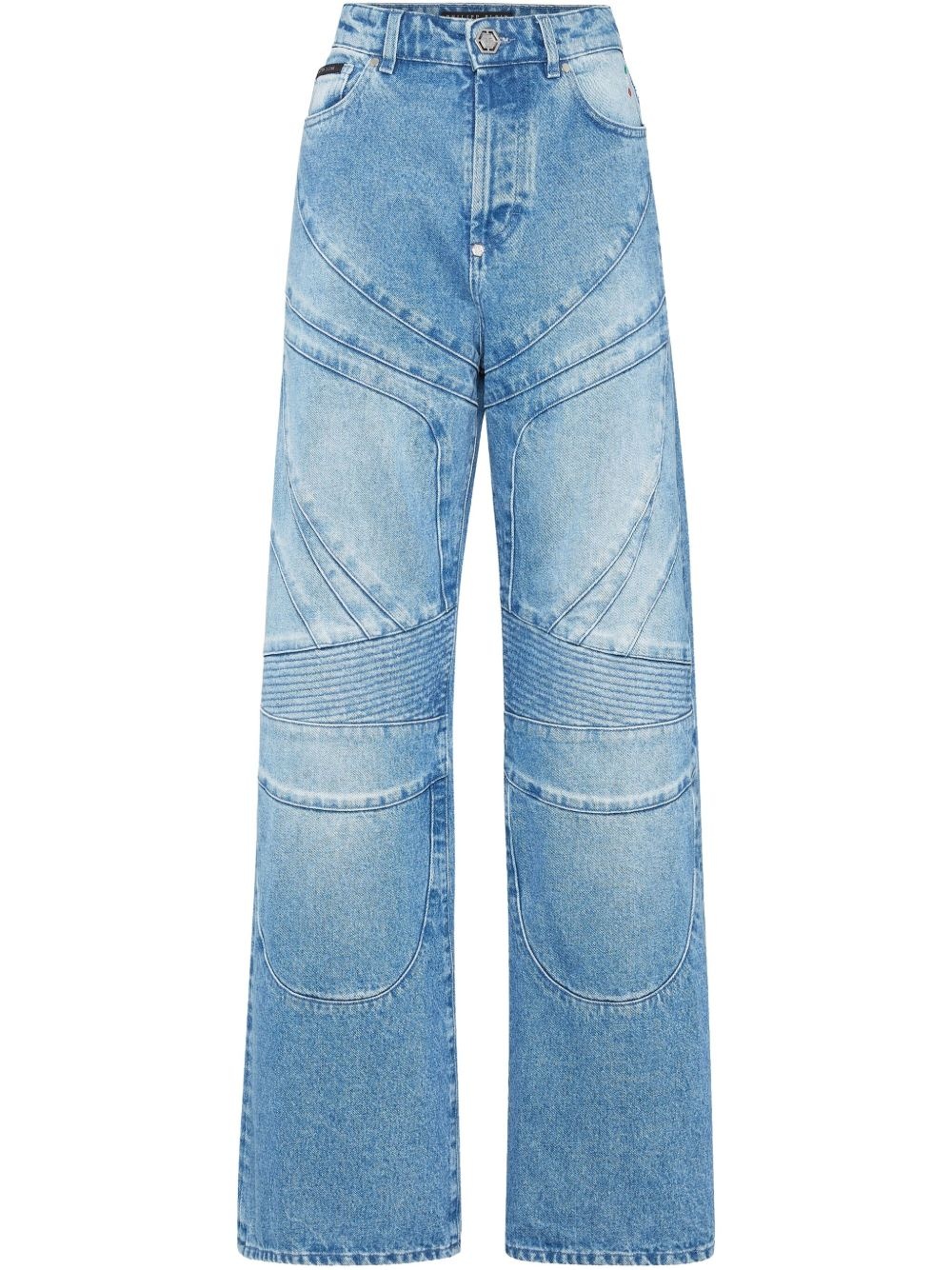 wide-leg jeans Highlights - Light blue - Concealed front fastening - Belt loops - Classic five pockets - Logo patch to the rear Made in Italy Composition Outer: Cotton 100% Lining: Cotton 97%, Elastane 3%