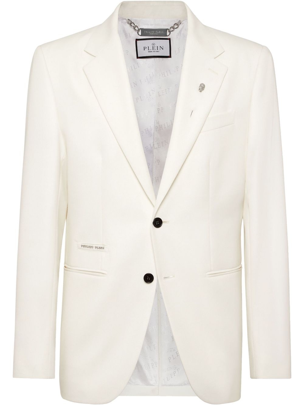 wool blazer Highlights - White - Front button fastening - Two side slit pockets - Rear slit - Buttoned cuffs Made in Italy Composition Outer: Polyester 55%, Wool 45% Lining: Acetate 52%, Viscose 48%