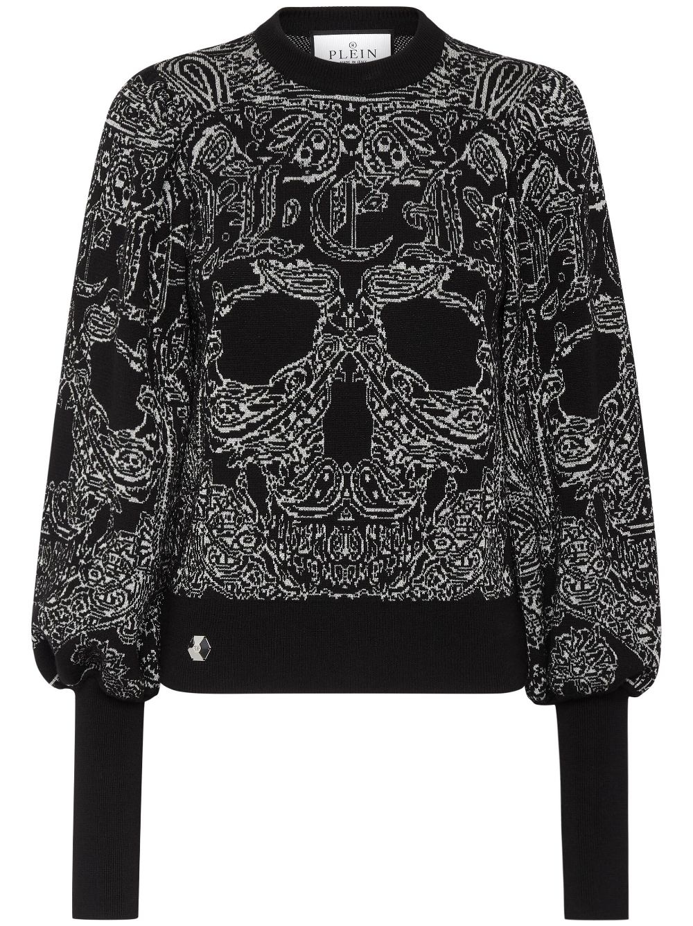 Wool & Lurex paisley jumper Highlights - Black/white - Wool blend - Intarsia knit - Paisley print - Ribbed cuffs and hem - Fitted-cuff sleeves - Crew neck - Balloon sleeves - Straight hem Made in Italy Composition Wool 64%, Acetate 25%, Metallic Fibre 6%, Nylon 5%
