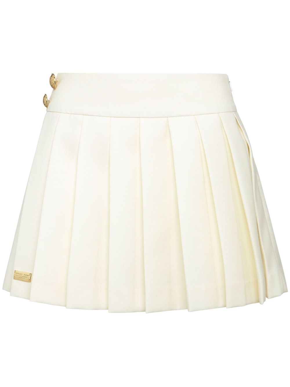 wool marine plisse skirt Highlights - White - Side button fastening - Logo plaque Made in Italy Composition Outer: Polyester 55%, Wool 45% Lining: Viscose 100%