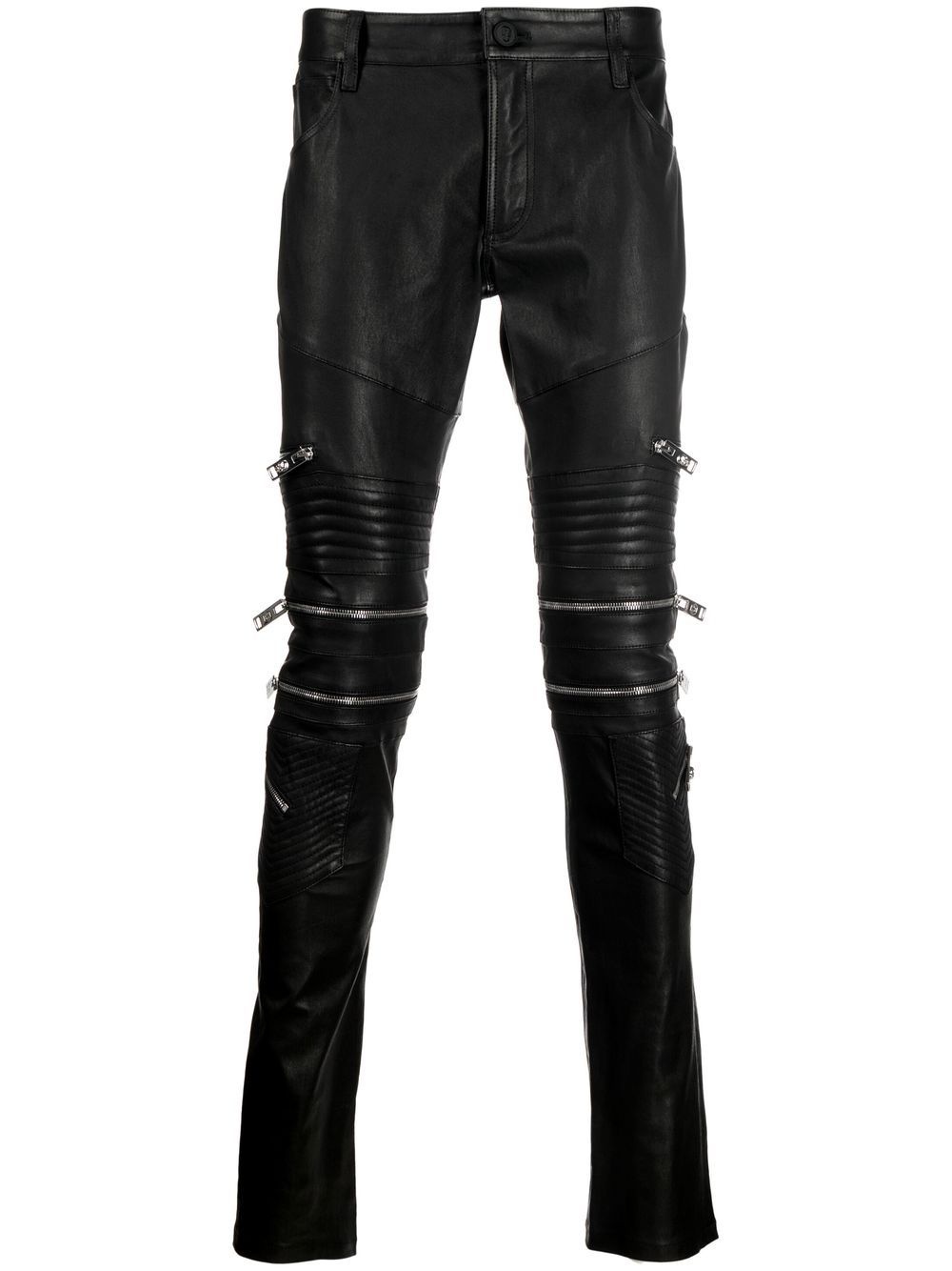 zippered leather biker trousers