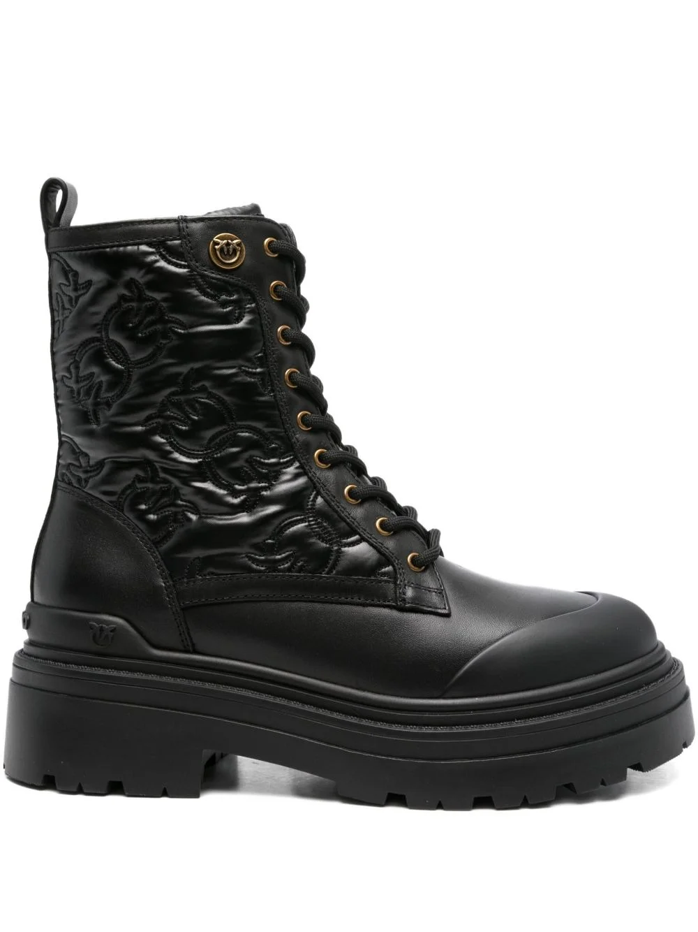 QUILTED LEATHER COMBAT BOOTS WITH LOVE BIRDS LOGO