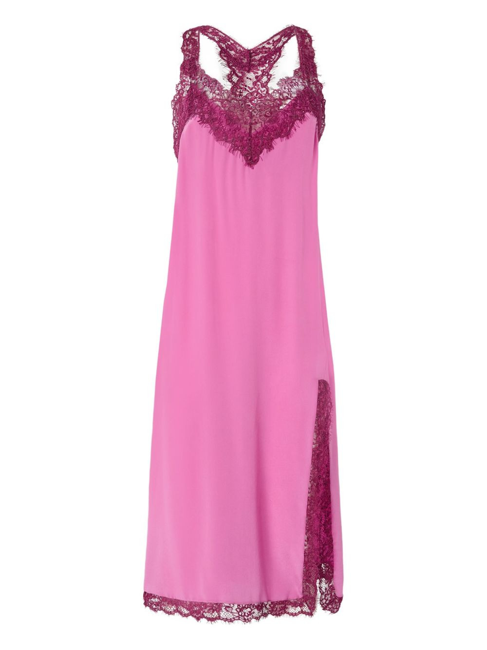 Aguglia V-neck midi dress Highlights - Pink - Lace detail - Side split - Sleeveless - Racer back - Trim detail Imported Composition Outer: Silk 100% Polyamide 55%, Cotton 45% Washing instructions Do Not Wash/Do Not Dry Clean