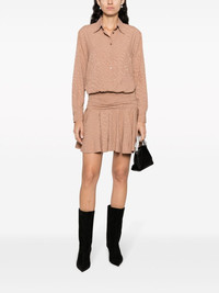 Arzach logo-jacquard shirtdress Cut to a shirtdress silhouette with a draped waistband and pleated skirt, PINKO's Arzach minidress is enhanced with all-over italic logo jacquard, infusing it with understated logomania. Highlights - Blush beige - Jacquard logo motif - Spread collar - Front button fastening - Long sleeves - Buttoned cuffs - Pleated skirt - Above-knee length - Flared hem Imported Composition Acetate 69%, Silk 31% SIZE & FIT Model measurements Height 5 ft 10 in(1.79 m) Bust/Chest 33.07 in(84 cm) Hips 35.82 in(91 cm) Waist 24.01 in(61 cm) FittingInformation Designed for a loose fit at the chest and waist with a close fit at the hips Made from a midweight non-stretch fabric This piece fits true to size – take your usual size