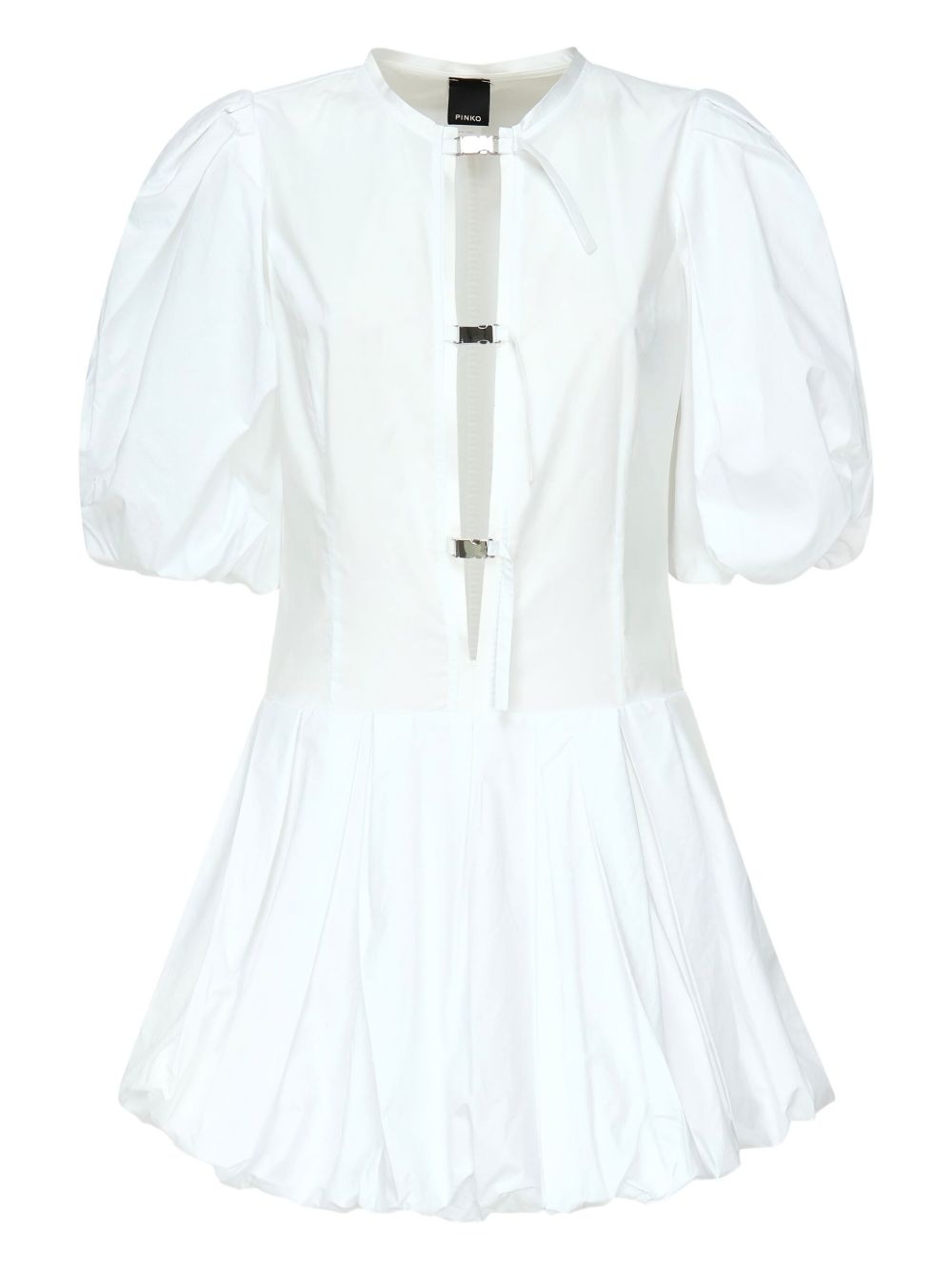 balloon-sleeve poplin dress Highlights - White - Balloon sleeves - Metal closure - Pleated skirt - Gathered waist - Poplin cotton Imported Composition Cotton 100% Washing instructions Read Manufacturer Guidelines