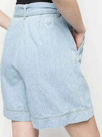 belted denim shorts Arriving in a medium blue wash, these PINKO denim shorts are made from soft cotton and detailed with a tonal tie belt. This loose-fitting pair is finished with embroidered Love Birds at the back, an iconic brand emblem. Imported Composition Lining: Polyester 50%, Cotton 50% Outer: Cotton 100% SIZE & FIT Model measurements Height 5 ft 8 in(1.73 m) Bust/Chest 33.07 in(84 cm) Hips 35.03 in(89 cm) Waist 24.8 in(63 cm) FittingInformation This piece fits true to size. We recommend you get your regular size Designed to be fitted at the waist, loose over the leg Made with a mid-weight non-stretch fabric Washing instructions Machine Wash