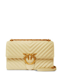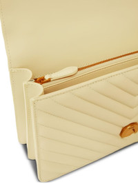 bird-embellishment shoulder bag Highlights - Beige - Chevron quilting - Signature love birds buckle - Gold-tone logo - Chain strap - Zip fastening Imported Composition Outer: Sheepskin 100% Bovine Leather 92%, Polyurethane 8% Lining: Cotton 100% SIZE & FIT Measurement DEPTH 2.75 in(7 cm) HEIGHT 6.29 in(16 cm) WIDTH 10.23 in(26 cm)